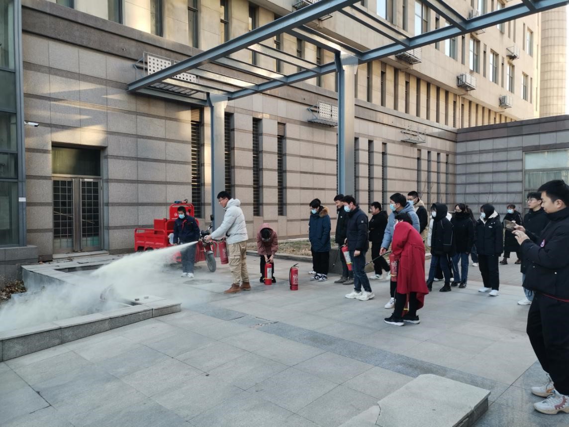 师生开展消防疏散演练。演练活动内容包括消防安全知识宣讲、消防设施安全检查、消防装备体验、以及消防应急疏散等。演练中,保卫处老师为师生讲解了遇到火情的处置方法,详细介绍了灭火器等基础消防设施的使用要领。参演师生在专业人员指导下,参与了干粉灭火器等实际操作体验。