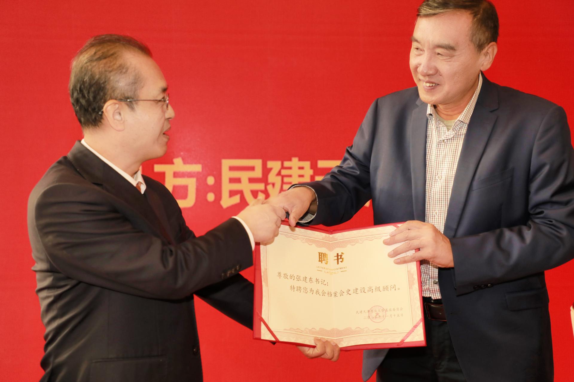 张建东书记从葛亚军主委手中接过民建天商档案会史建设高级顾问聘书后,结合我校发展史和接触民建天商前辈的经历,从民建天商缔造者边嘉珏老先生的家史和生平出发,生动讲述了边老先生继承边家爱国奋斗家风、在天津高校率先建立了民建基层组织、发展了曾任天津市委会副主委和全国政协委员的民建天商第二代领导人方嘉民、曾任天津市人大常委的第三代领导人瞿麦生等一大批优秀会员,缔造了我校最早最大的民主党派,创造了我校同时期两位全国政协委员边嘉珏和方嘉民均来自民建天商的辉煌历史,促成了交通灯加装和公交站开通等高质量提案落实便民的良好社会影响,为我校我市发展做出了突出贡献,为民建天商后辈发扬传统、续写辉煌打下了坚实基业。边家的爱国情怀、“成功者不放弃,放弃者不成功”的家训,边嘉珏老先生不懈努力、创建发展民建天商、爱国爱会,无私奉献的精神,感动了在场的新一代民建人。