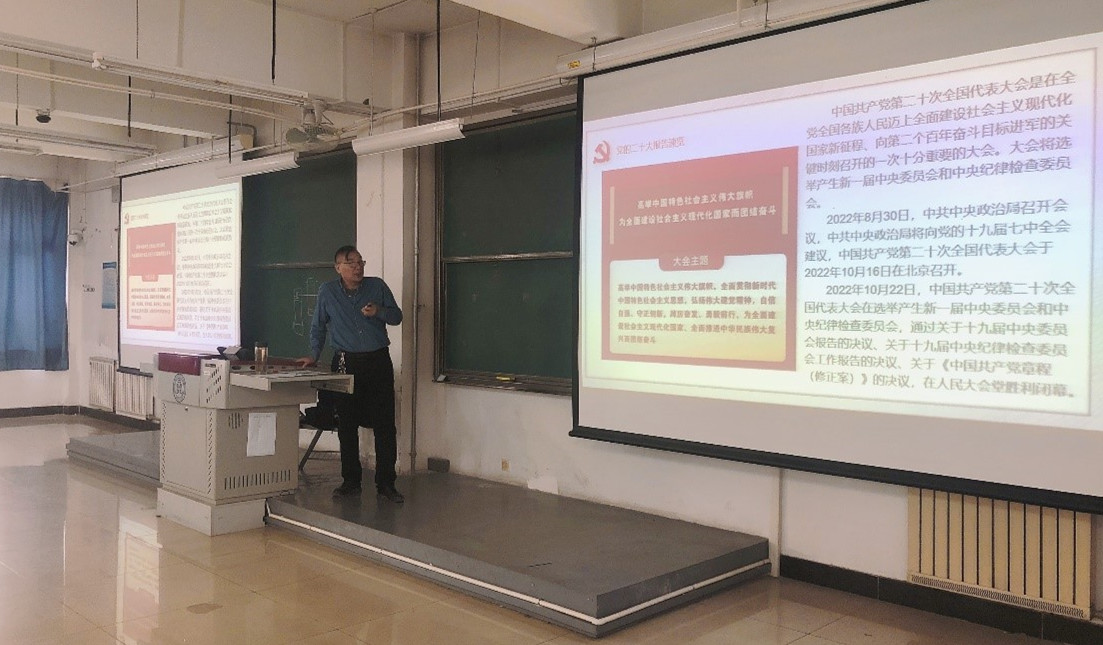 张建东书记以“习近平新时代中国特色社会主义思想是马克思主义新境界——党的二十大报告解读”为主题,从“党的二十大报告速览”“党的二十大报告关键词”“‘数’读二十大报告”“二十大报告金句”等方面展开,逐句解读大会主题、党的二十大报告十五部分内容,深刻阐述十年来“三件大事”、“三个务必”、马克思主义中国化时代化“六个必须”、中国式现代化、“五个重大原则”、“五个必由之路”等内容,通过全面解读与重点阐述相结合,使师生对党的二十大精神有了更深刻理解。党课声情并茂,重点突出,鲜活生动,引起了全体师生强烈反响和思想上的共鸣。