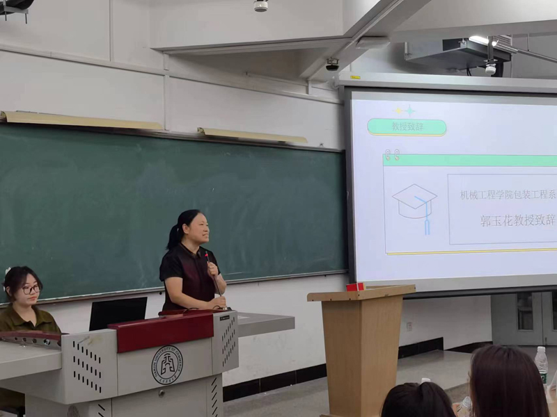 见面会上,黄震老师、郭玉花老师、张晓川老师依次上台致辞,详细介绍了包装的概念以及包装工程系取得的成就。老师们鼓励同学们自强不息,奋发有为,既学好理论,也要结合实际,多参与各类专业学科竞赛,投身专业实践,在竞赛、实践中提高实践创新能力。勉励同学们珍惜四年大学的美好时光,选定奋斗目标,做好学业规划,注重自身素质的提高。老师们的讲话让包装学子们感受到了包装老师们对同学寄予的厚望和深深的关切。