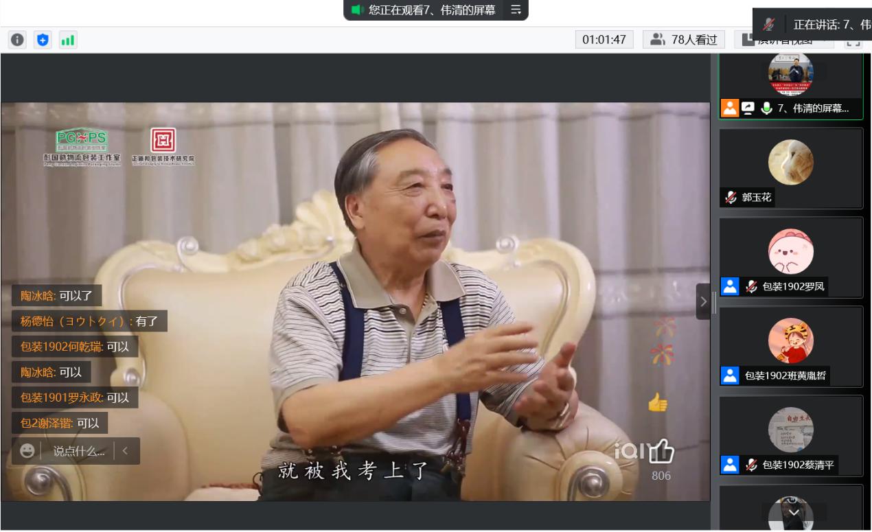 彭国勋教授受邀向师生们分享了他出国留学和编写包装工程专业教材的经历,向学生们表达了对包装行业的热爱以及对未来包装发展的期许。