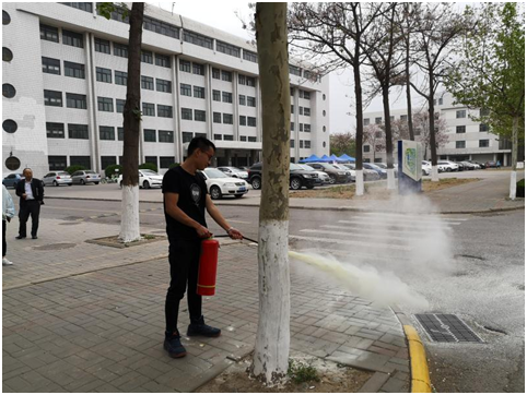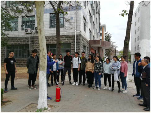 教师和学生的积极性,共同参与其中。整个过程由院领导统一指挥、调度,师生们在接到消防演习开始的指令后,迅速行动,从各房间快速撤离到楼道内,由楼梯弯腰掩鼻统一有序地迅速撤离到建筑物外,整个疏散过程快速、有序。最后在建筑物前的道路上演习教师为现场的师生们讲解了消防注意事项并演示了灭火器的使用方法,学生们踊跃地参与了灭火器的实操练习。