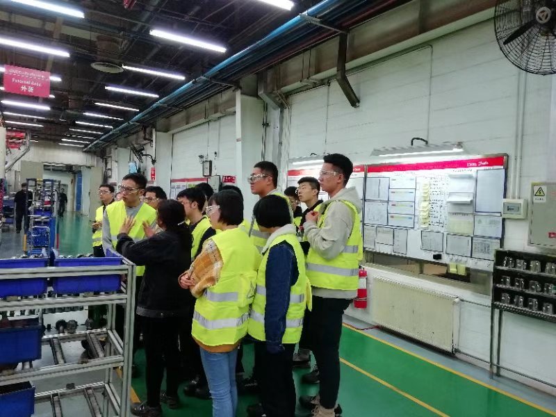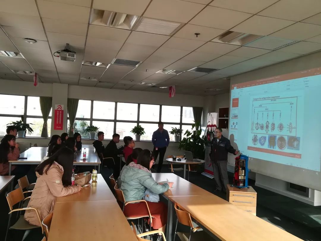 一行42人受到公司接待人员的热烈欢迎,先后参加了企业介绍与压缩机知识的现场分享会,丹佛斯经验丰富的工程师以压缩机实物为教具从企业的角度给学生们上了一堂别具精彩的专业课,同学们学到了很多课本以外的知识;分组参观了检测中心和实验室,丹佛斯拥有CNAS及美国认证的检测中心,不但承担着公司内部的各项质量检测,同时面向外部提供检测服务并出具国际认可的检测报告,一台台先进的仪器设备令学生们大开眼界,现场实验人员的科学严谨给同学们的学习和实验做了最好的示范;最后一个参观环节是生产车间,工作人员从压缩机生产的源头到最终的成品,走过每一个生产工段详细地解说了整个流水线,同学们对压缩机产品有了初步的了解。