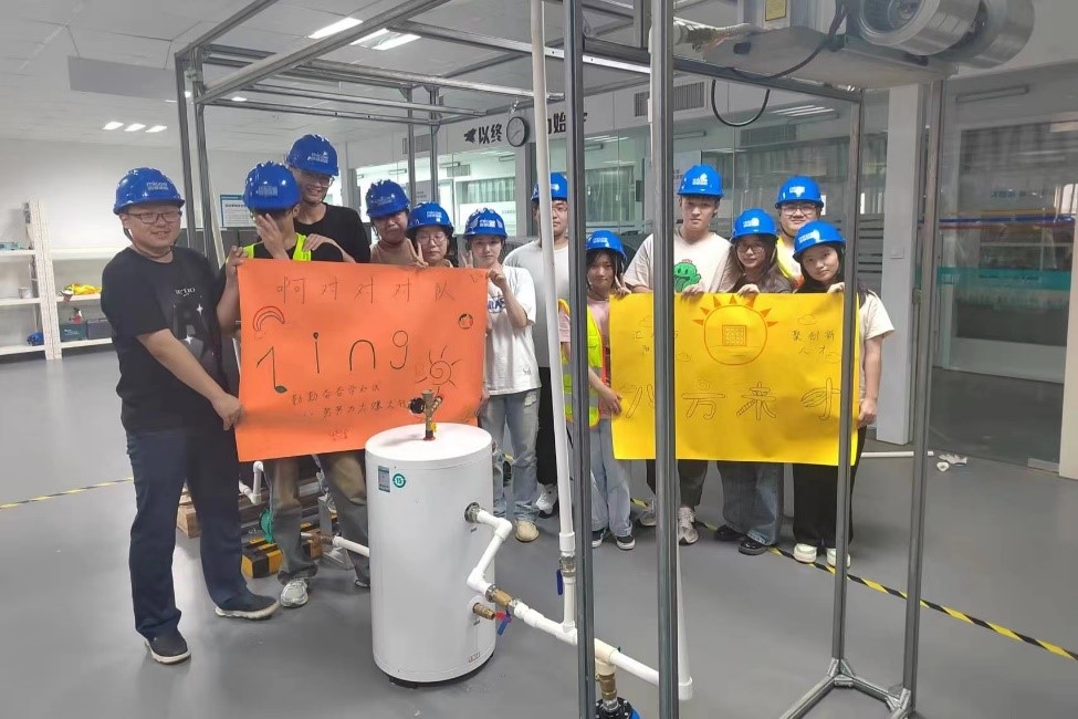 在第一周的理论学习中,由四季沐歌的专业工程师为同学们着重介绍了太阳能热水系统及其施工流程,并且组织同学们亲自动手安装太阳能真空管以及利用不同的零件连接空气能采暖系统的管路。理论结合实践的教学方式,激发了同学们的学习兴趣,更好的理解了理论知识,锻炼了学生的动手能力。