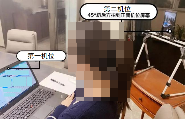 1、远程复试考核采用双机位。考生须准备一台笔记本电脑(带摄像头、麦克风)或一台台式电脑(外置摄像头、麦克风及音响),和一部智能手机(第二机位使用),保证设备电量充足,存储空间充足,;也可准备两部智能手机(一部第一机位,一部第二机位)。“第一机位”用于采集考生音、视频源(考生正前方),建议使用笔记本电脑或者台式机,不推荐使用手机。“第二机位”用于采集考生所处的环境(考生远端,侧方或者后方),要开启静音模式,要求能够监控考生的周边情况以及“第一机位”显示器的音、视频源,建议使用手机。第一机位和第二机位视野交叉形成360度监控视野。